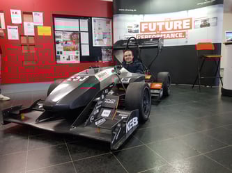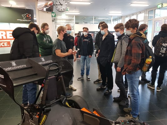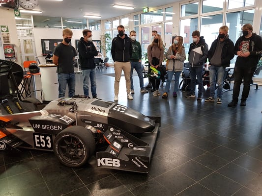 Nach einem spannenden Einführungsvortrag von Prof. Dr. Foysi, dem es in eindrucksvoller Weise gelang, Brücken zwischen den Konzepten der Strömungsmechanik und Szenen aus Hollywood-Filmen zu bauen, präsentierten die Mitglieder des S3-Racing-Teams ihren Formel-Rennwagen, mit dem jährlich an Wettbewerben der „Formula Student“ teilgenommen wird. Das Team besteht übrigens bei weitem nicht nur aus Studierenden des Maschinen- oder Fahrzeugbaus – bei einem solchen fachübergreifenden Projekt spielen u. a. auch wirtschaftliche Disziplinen eine entscheidende Rolle. Im Anschluss durfte dann auch probeweise Platz im Cockpit des elektrisch angetriebenen Boliden genommen werden.