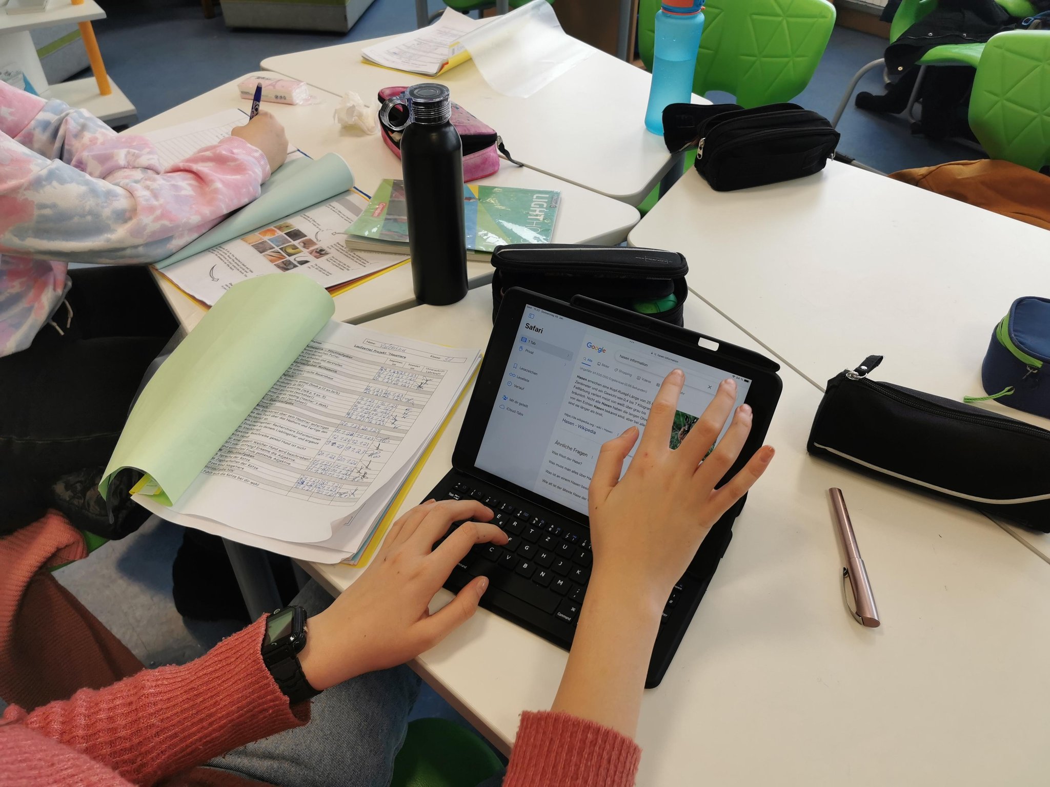 Dabei stand vor allem das Üben der Selbstständigkeit und des eigenverantwortlichen Lernens im Vordergrund, aber auch die Vermittlung von Basiskompetenzen im Umgang mit dem iPad und der weiten Welt des Internets. So lernten die Schülerinnen und Schüler anhand von Steckbriefen und Suchanzeigen, wie man sinnvoll im Internet recherchiert und welche Informationen hier wirklich wichtig sind.