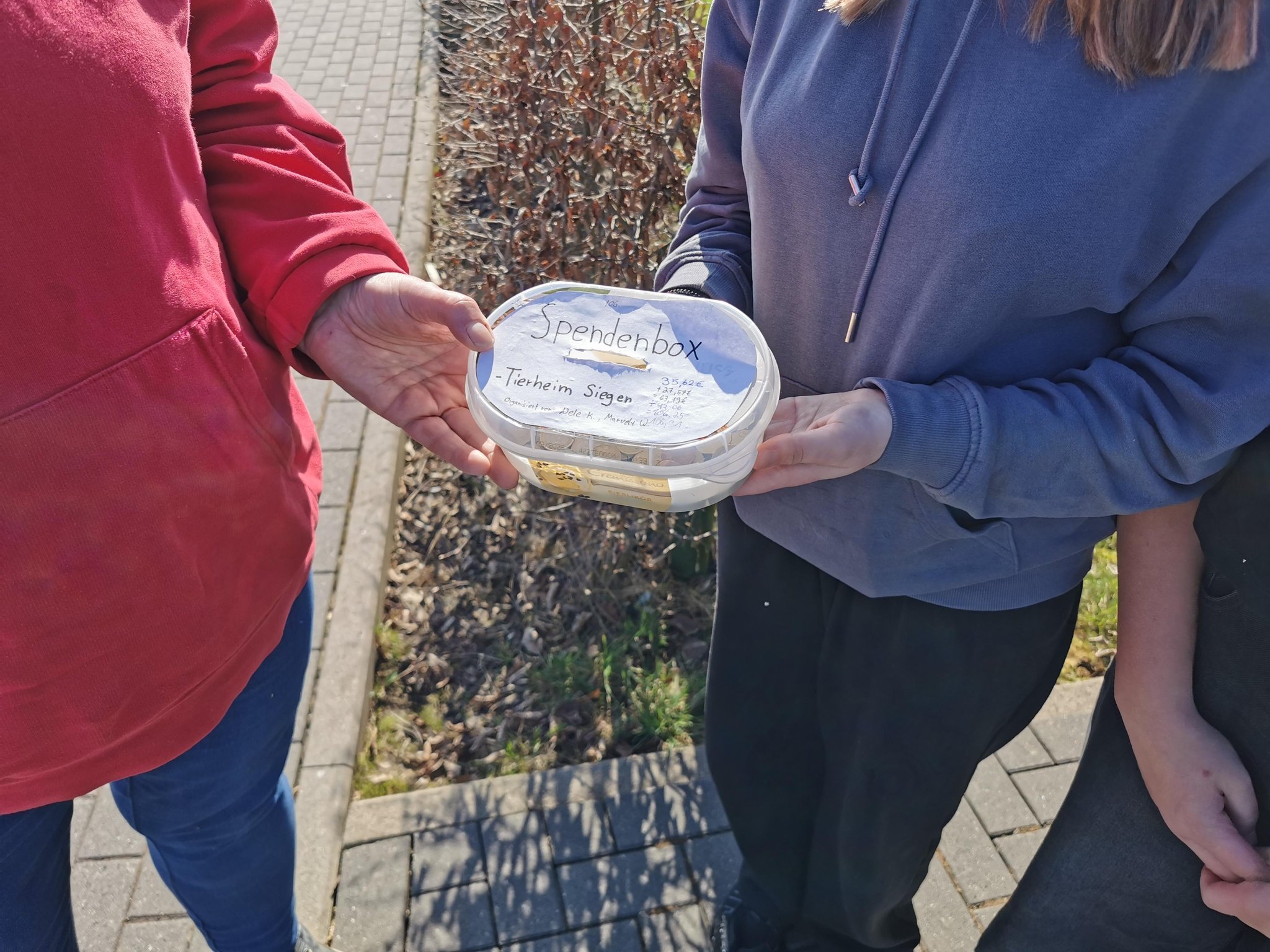 sammelten Spenden für das örtliche Tierheim in Siegen. Über mehrere Wochen hinweg wurden in der Schule Sach- und Geldspenden entgegengenommen. Besonders gefragt waren Futter, Decken,