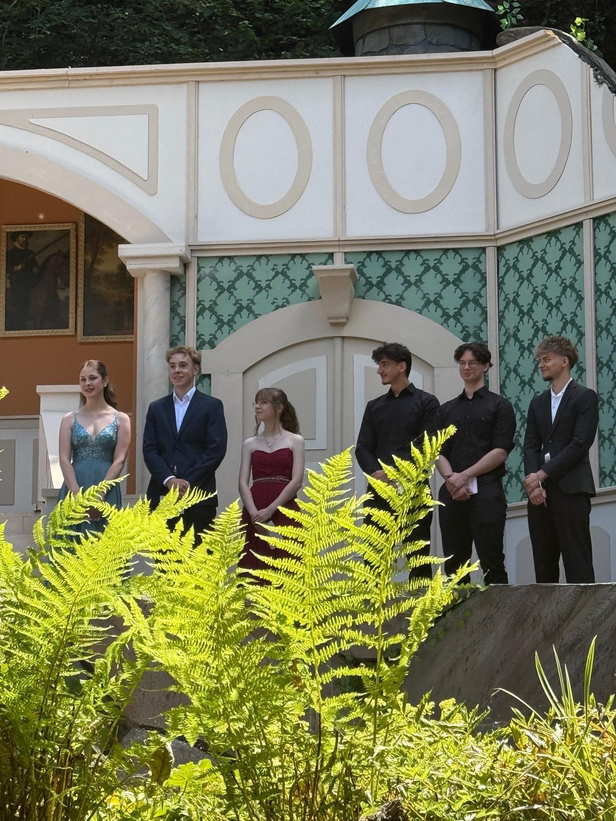 Die wechselnden Bühnenbilder – in diesem Jahr geprägt von den Theaterstücken Die lustigen Weiber von Windsor und Es war einmal …? – verleihen jeder Verabschiedung eine ganz eigene Atmosphäre und