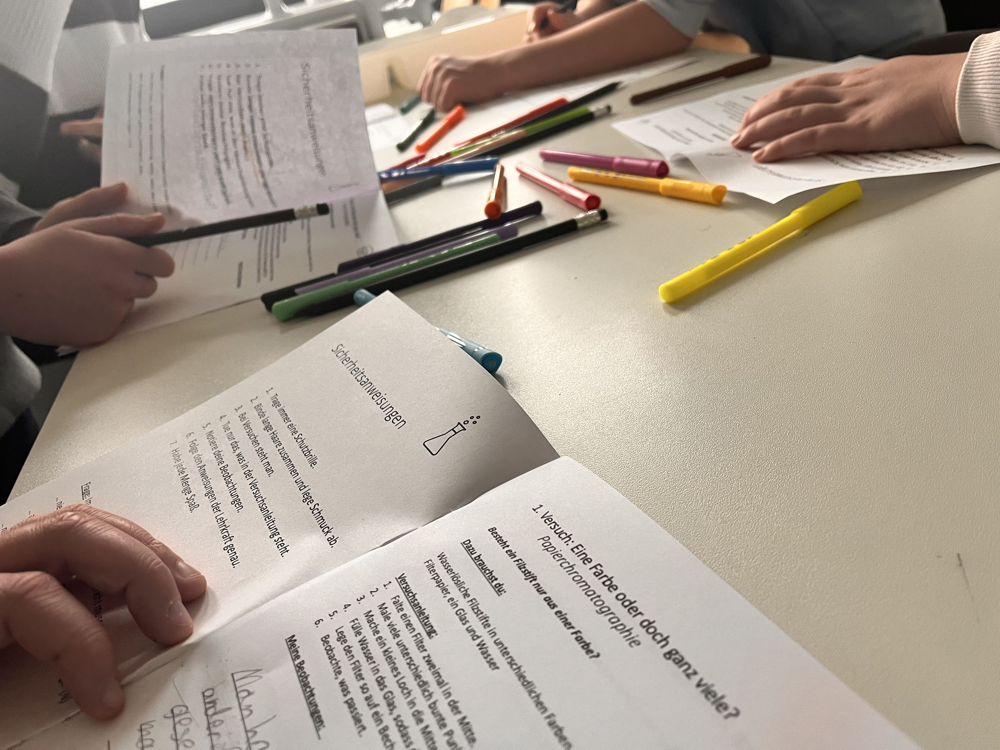 Im naturwissenschaftlichen Raum wurde mit Frau Spornhauer experimentiert. Dabei entdeckten die Schüler*innen spielerisch, wie spannend und vielseitig Naturwissenschaften sein können.