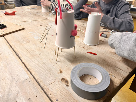 Im Technikraum arbeiteten sie gemeinsam mit Herrn Stein an motorisierten Pappbechern, die mit viel Kreativität gestaltet und in Bewegung versetzt wurden – Technik zum Anfassen.