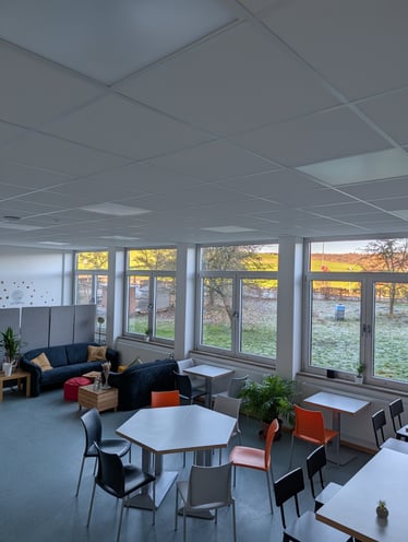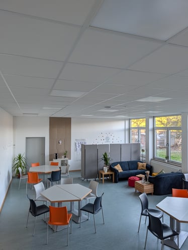 Exklusive Cafeteria: Unsere neu gestaltete Cafeteria steht exklusiv der Sekundarstufe II als Lounge und Arbeitsraum zur Verfügung.