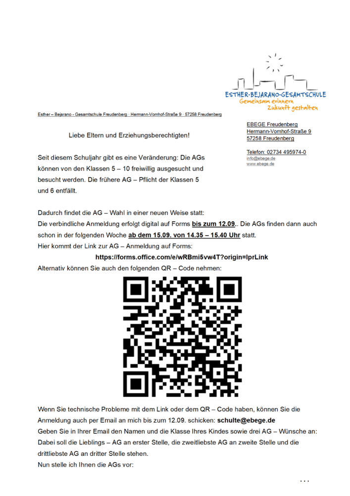 Liebe Schülerinnen und Schüler, liebe Eltern,